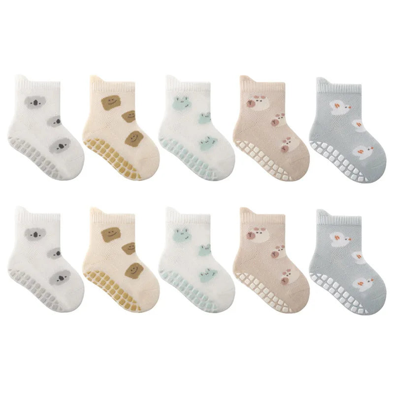 5 Pairs Childrens Non-Slip Socks Cute Cartoon Pattern Kids Boys Girls Floor Socks Comfortable Breathable for Toddler