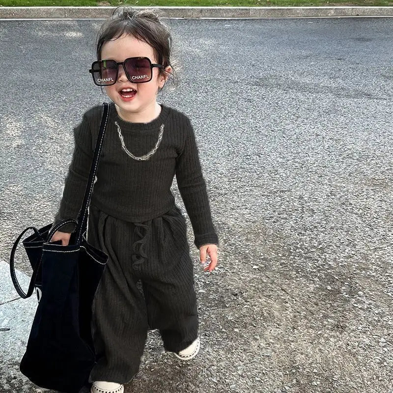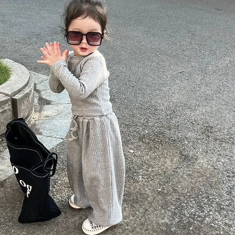 Round Neck Long-Sleeved Top Solid Color Pant Suit