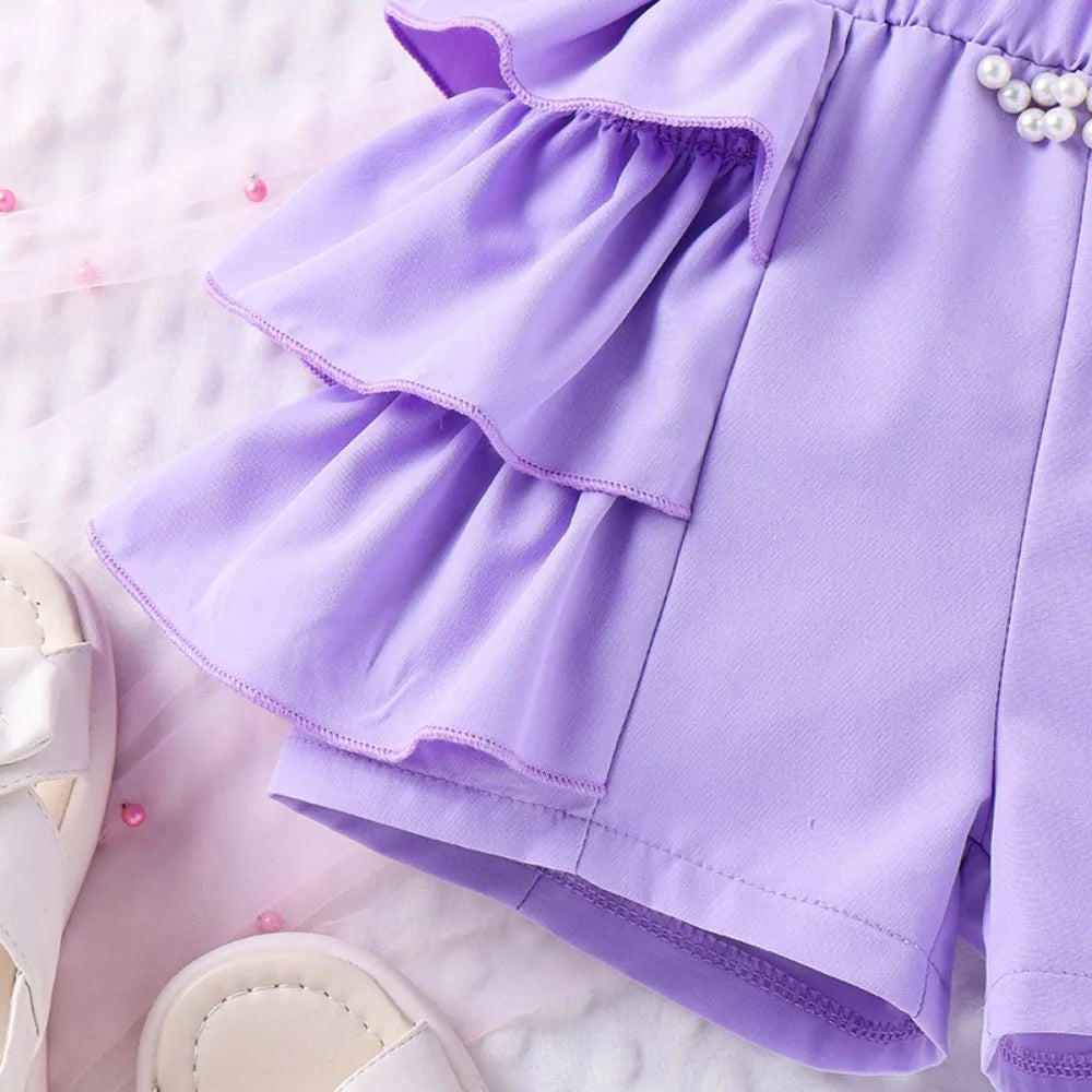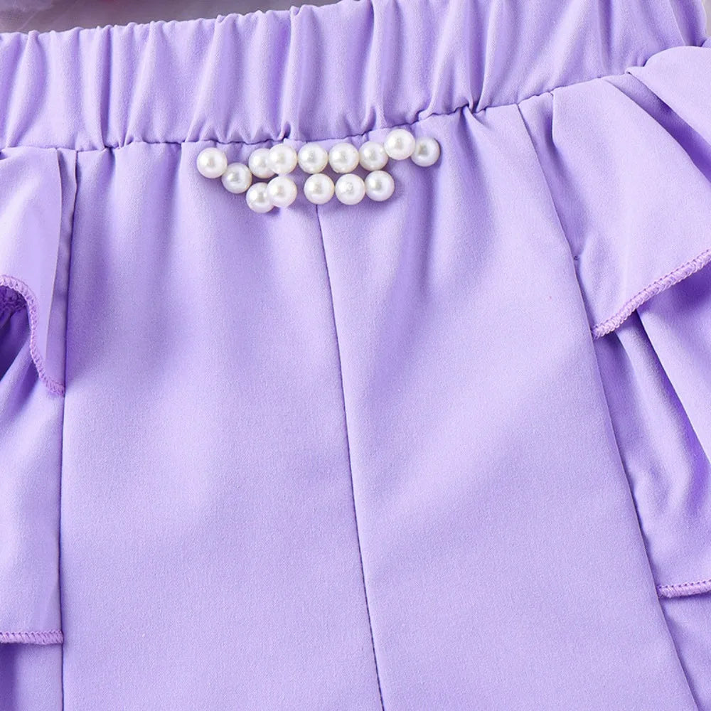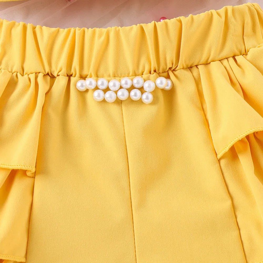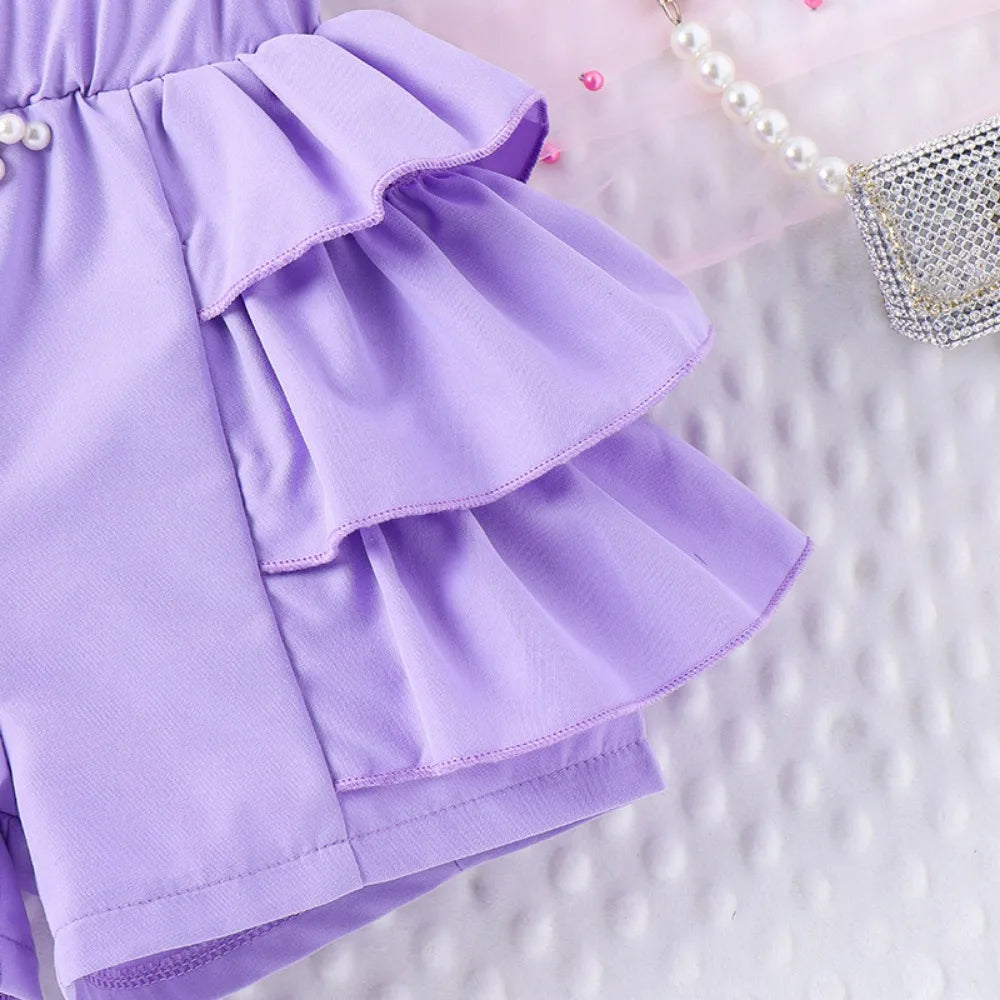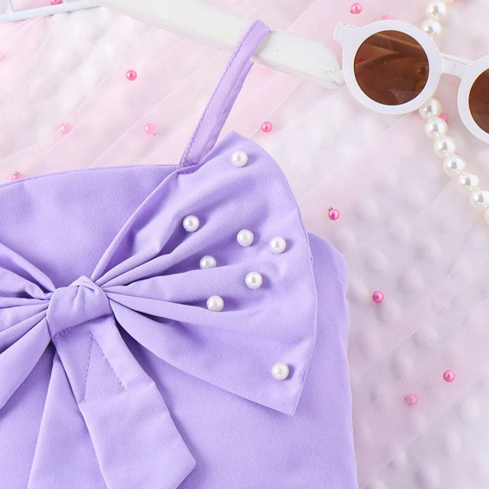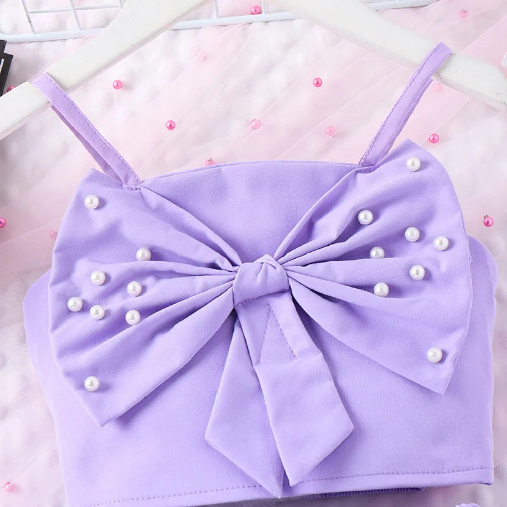 Bear Leader Summer New Pink Girls Clothes Sweet and Cute Children's Suit Pearl Bow Decorative Strap Top+Cake Skirt 2-piece Set