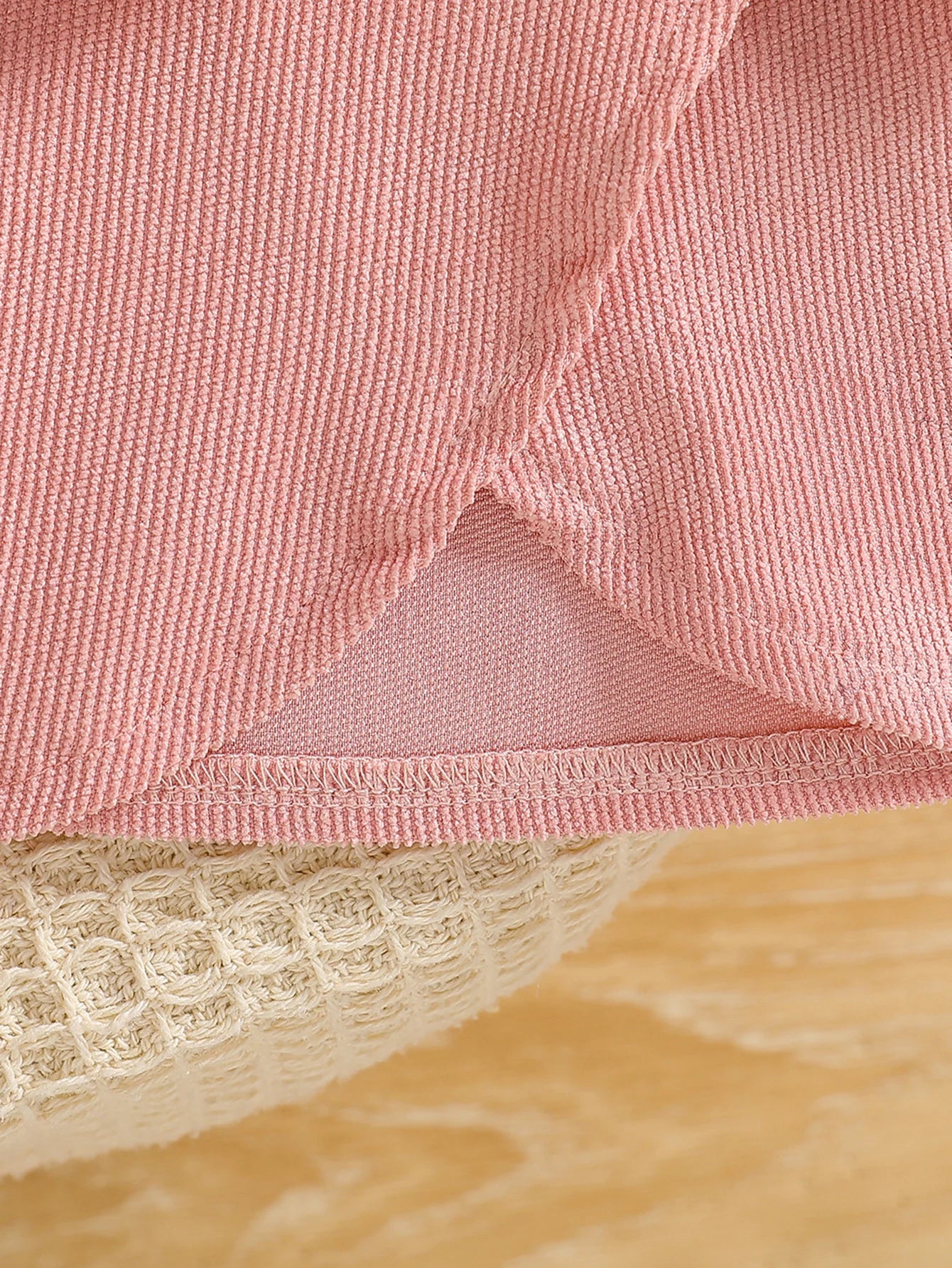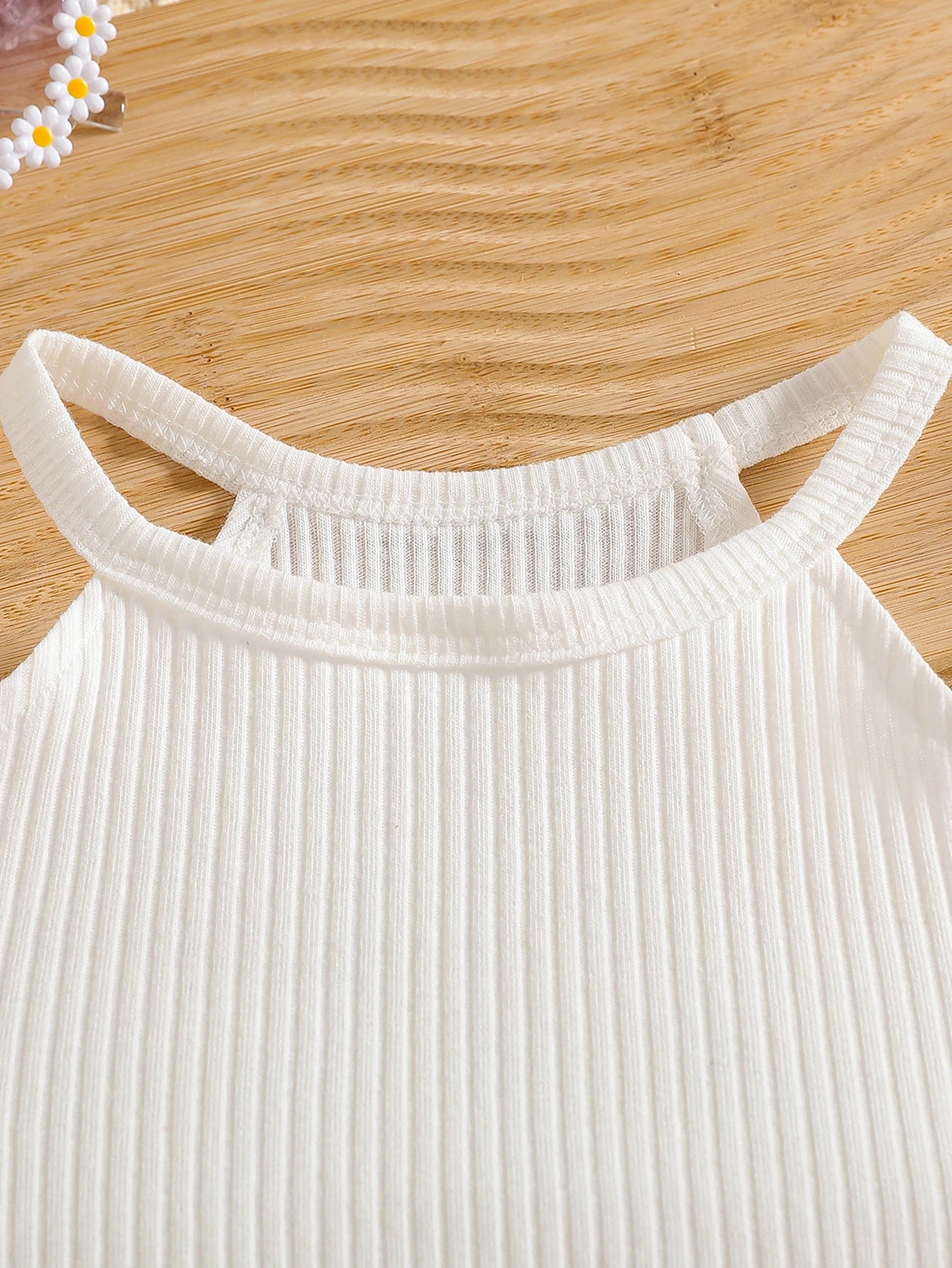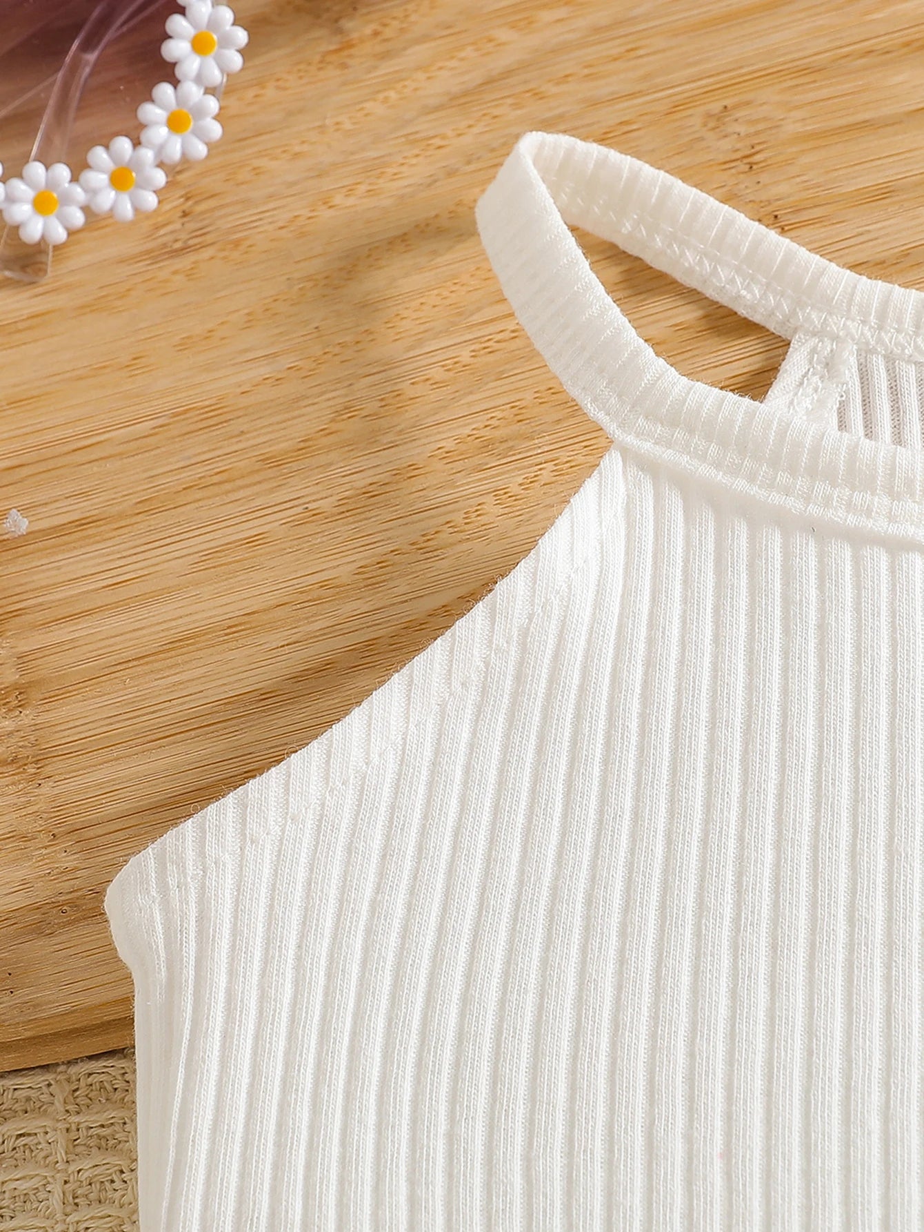 Fashion Baby Girl Two-Piece Set With Hanging Neck Sleeveless Top And Bow Decoration Short Skirt Set