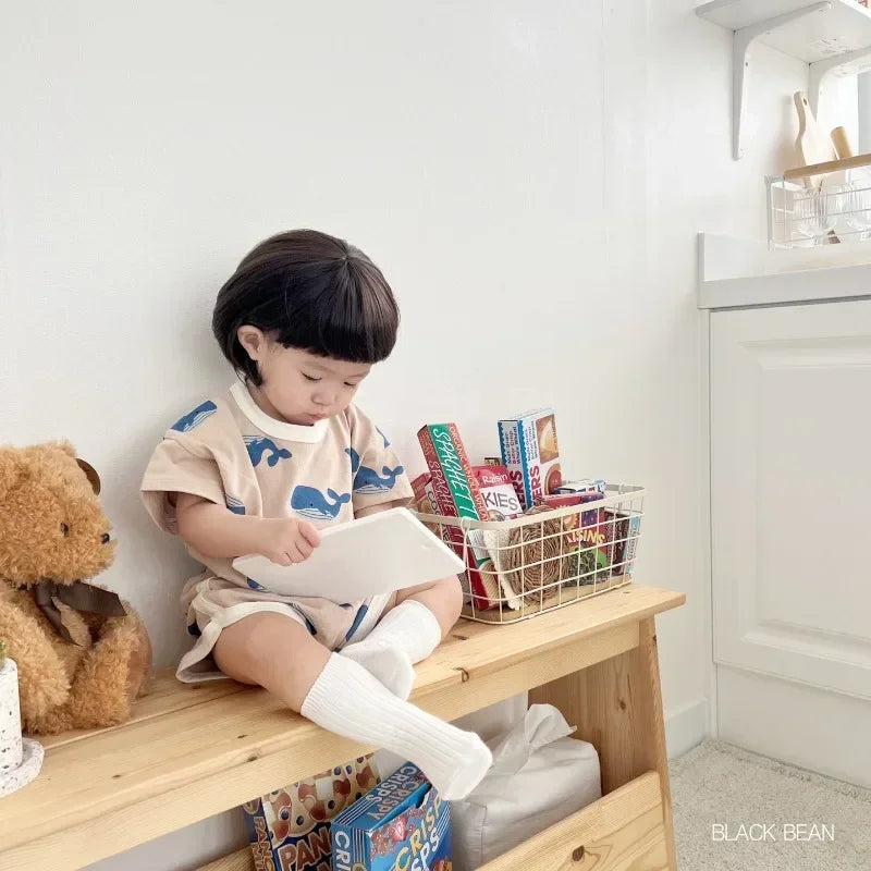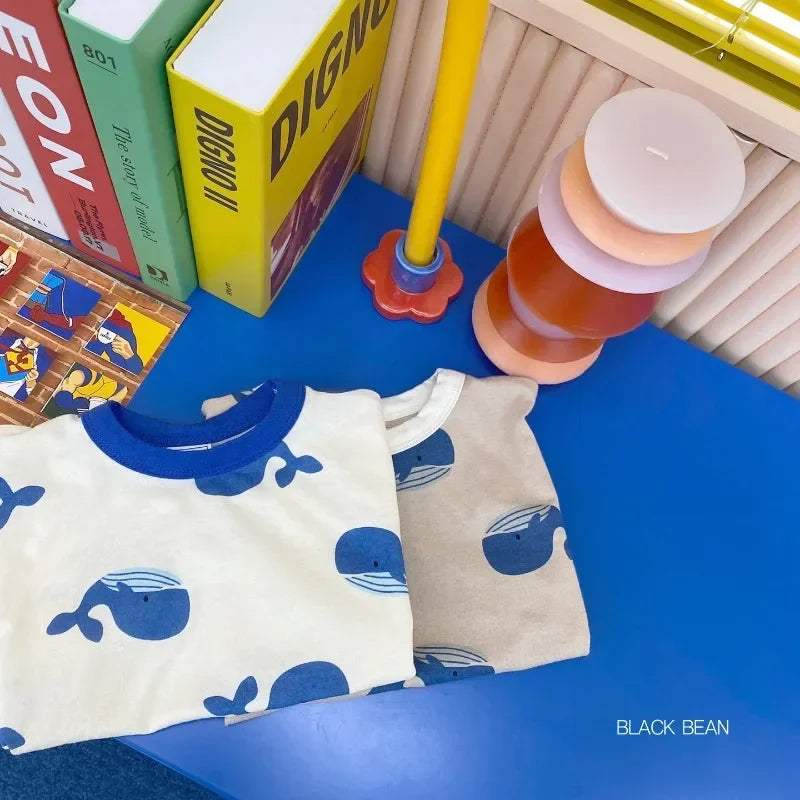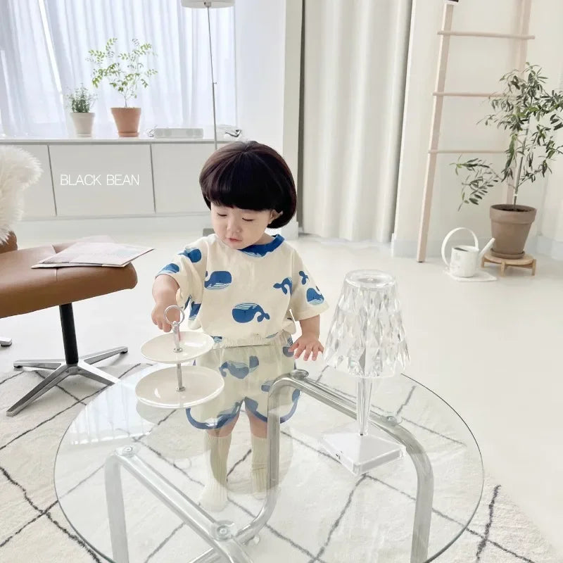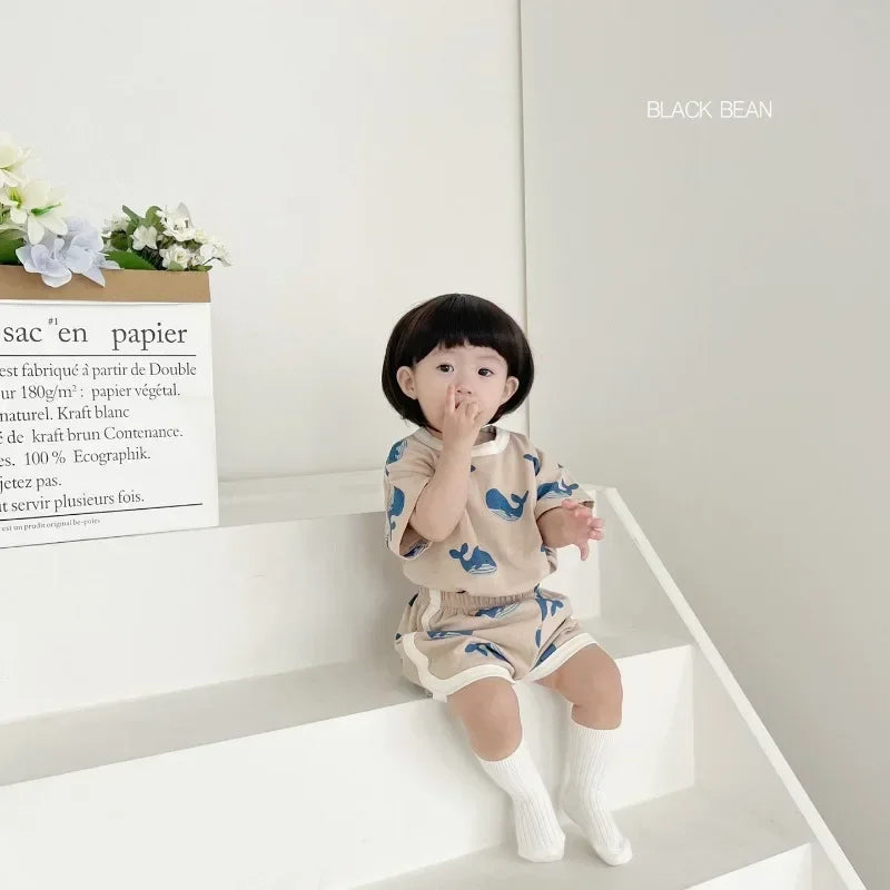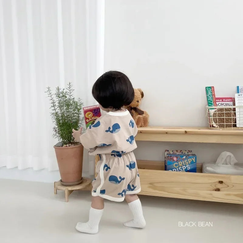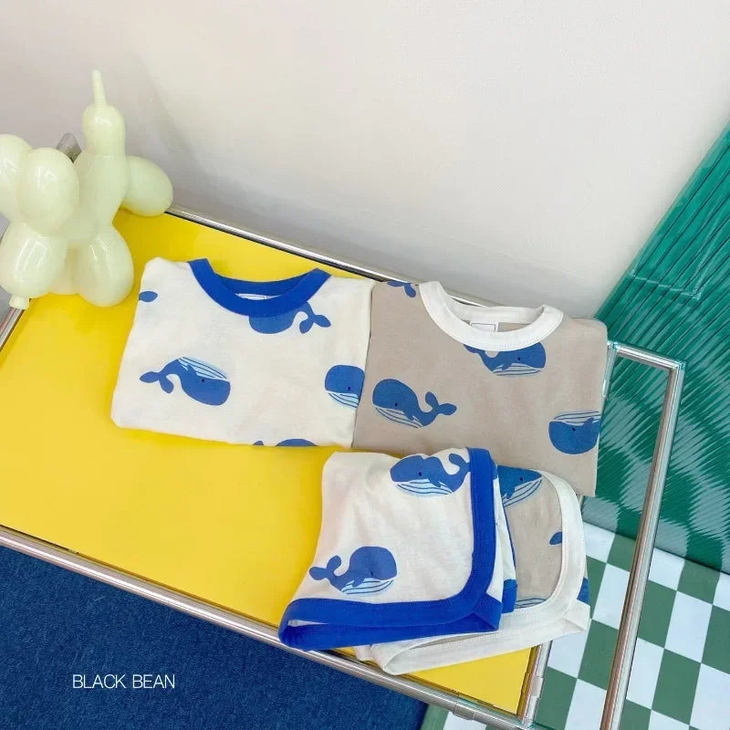 Full Print dolphin Tees +shorts Boys And Girls Cute Cotton Fashion Crew Neck Pullover Short Sleeve Home Clothes 2pcs Suits