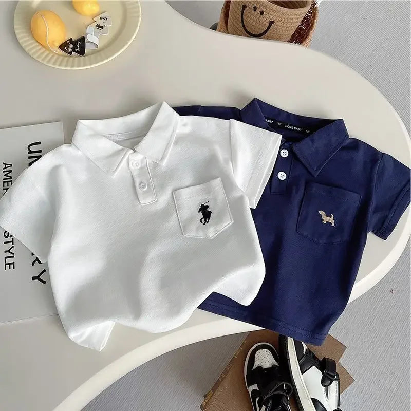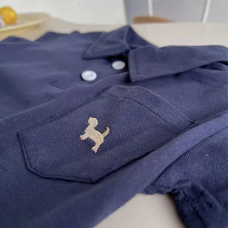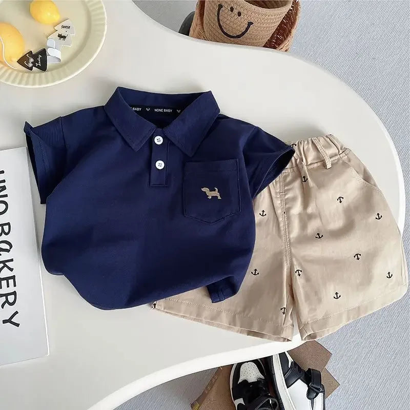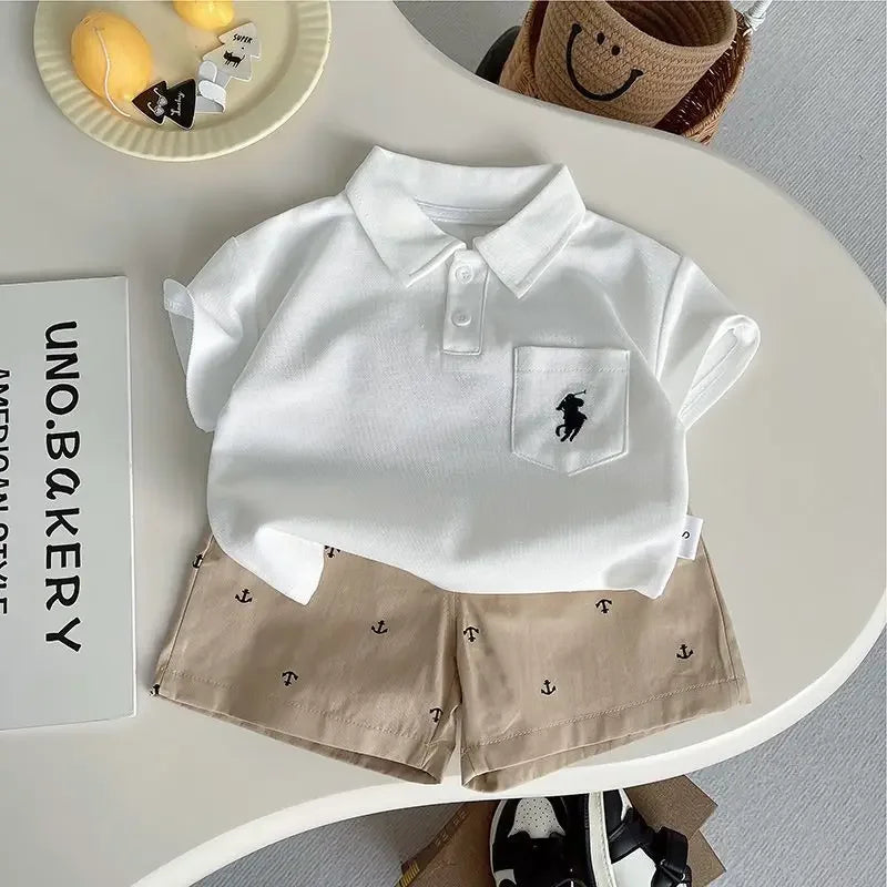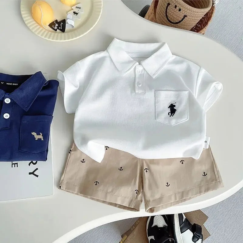 Infant Boys Summer Thin Polo Shirt Set Baby Boy Short Sleeved Cartoon Embroidered Shirt + Full Printed Casual Shorts 2pcs Set