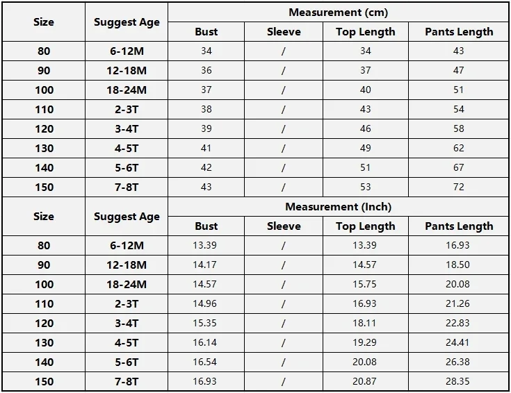The sizes are mainly according to kids' height.
