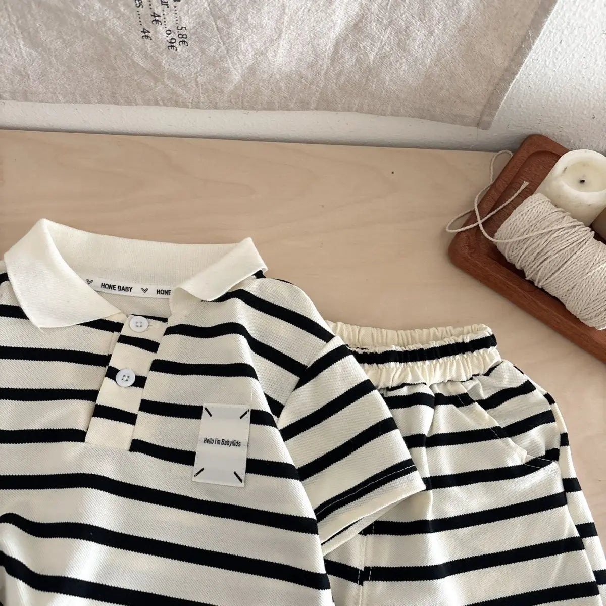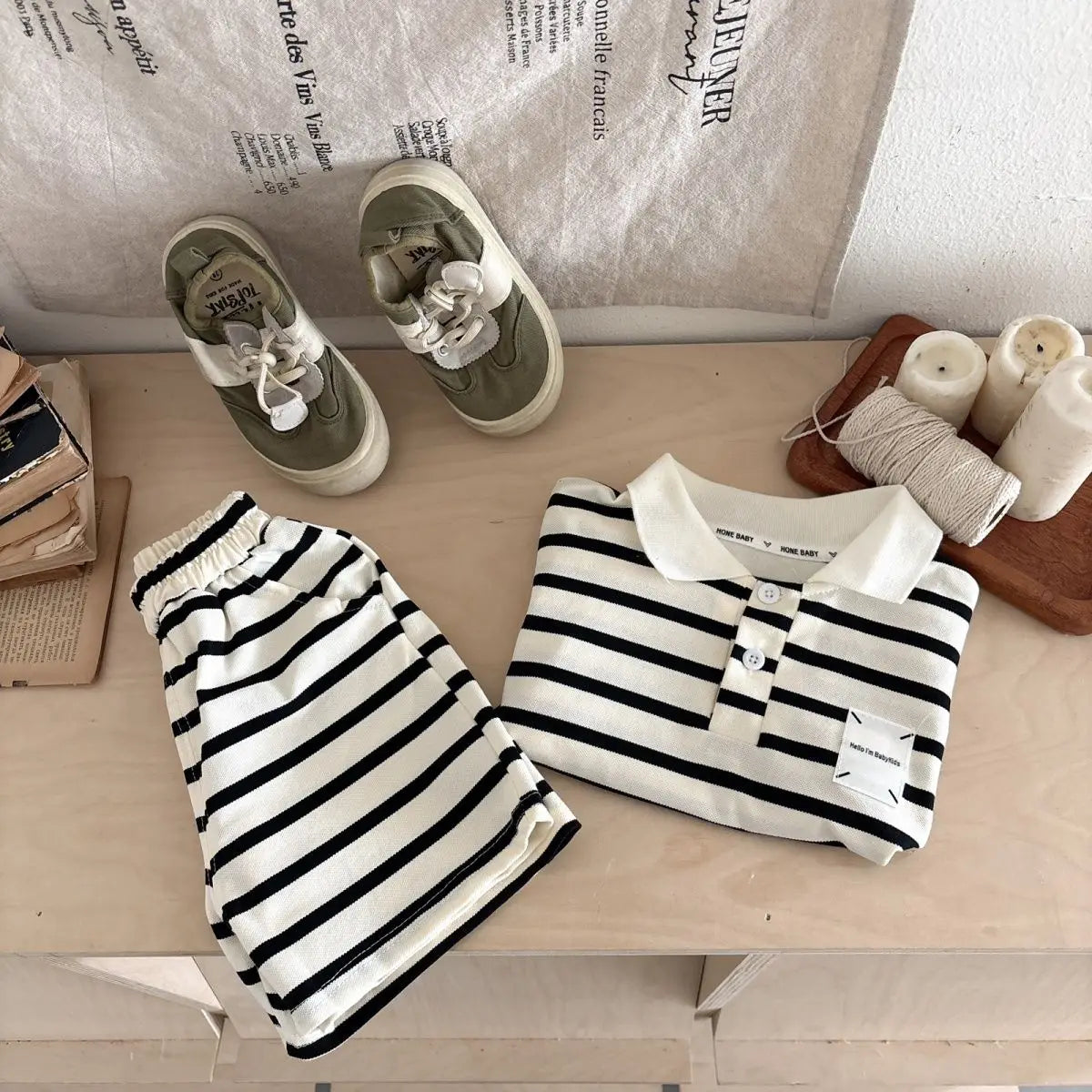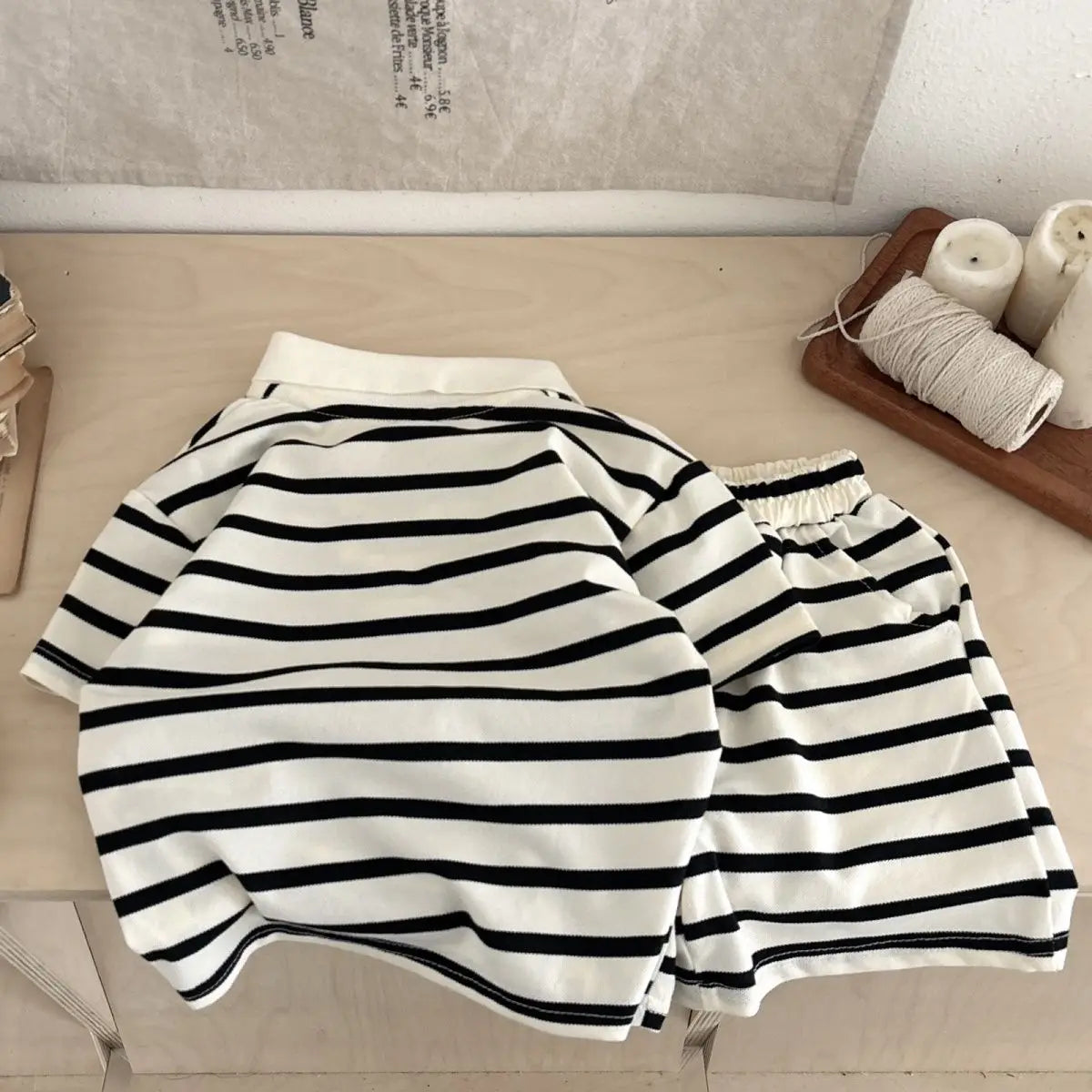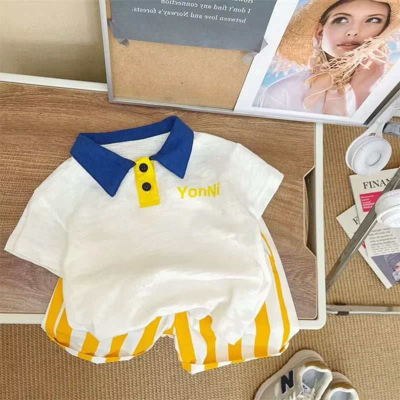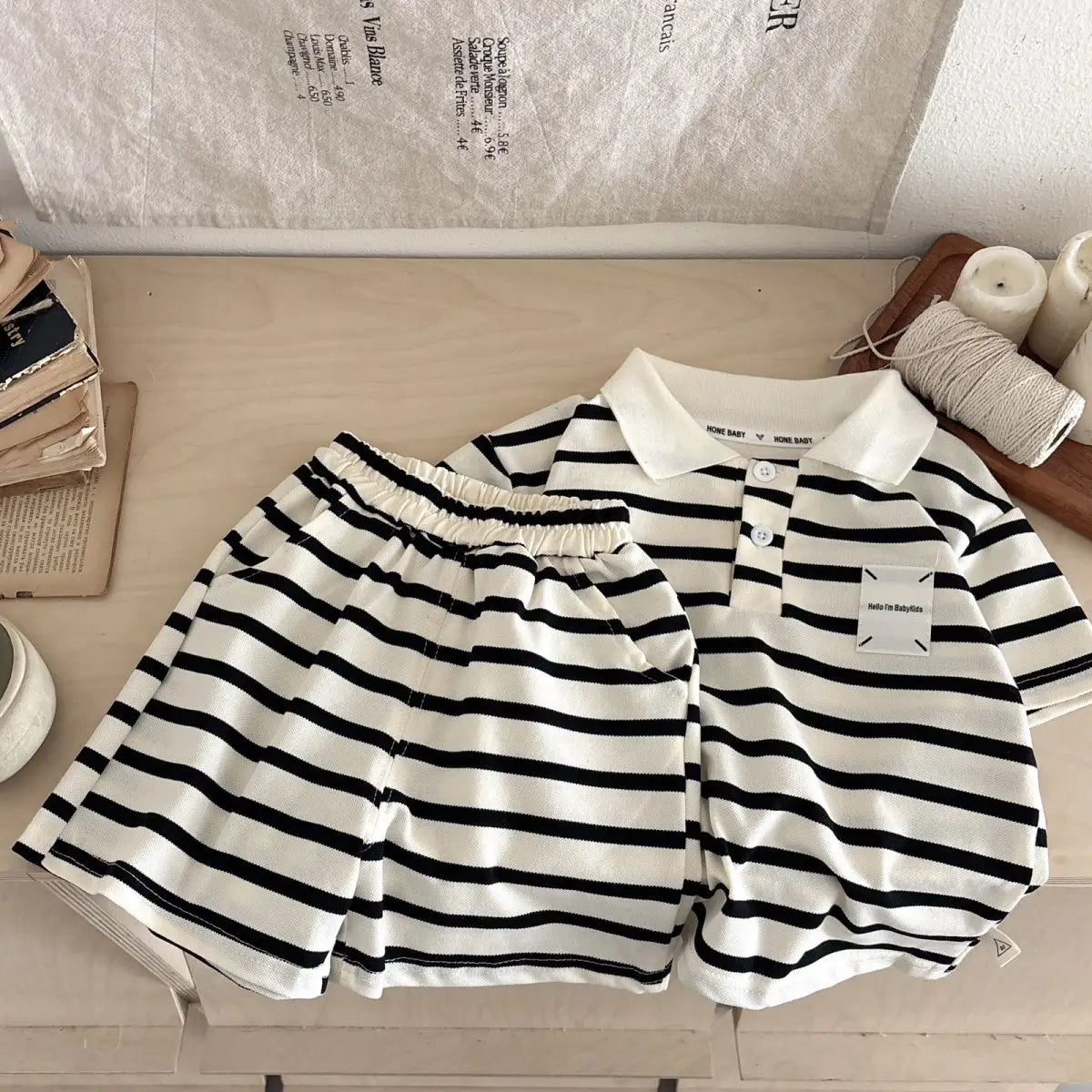 Korean Mother Kids Clothes Boys Girls Polo Shirt Shorts 2pcs Set Summer Cotton Short Sleeve Fashion Suit 1-6Y Children Clothing
