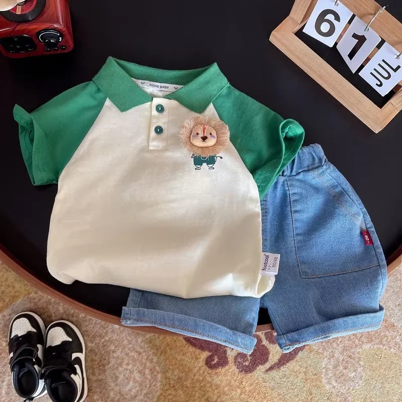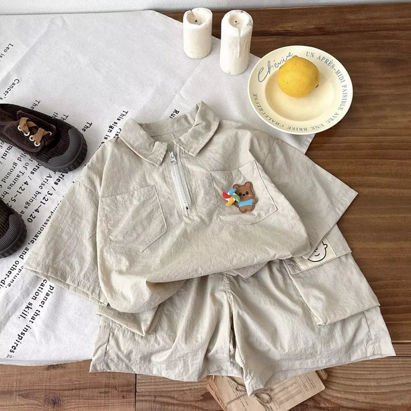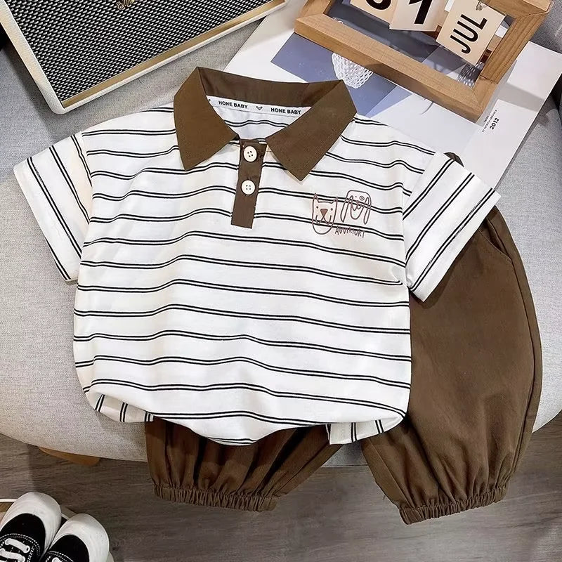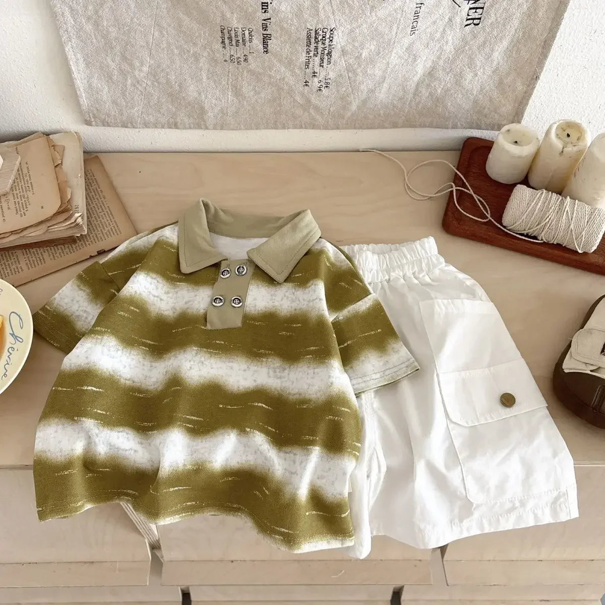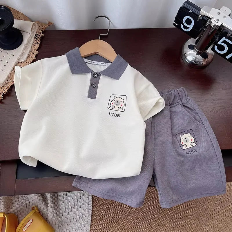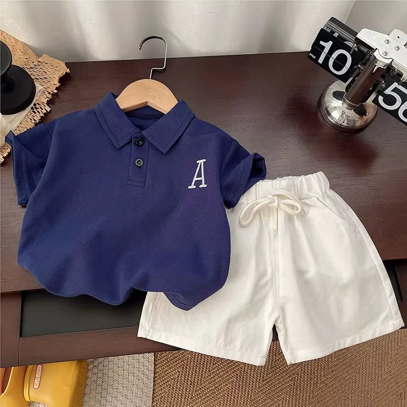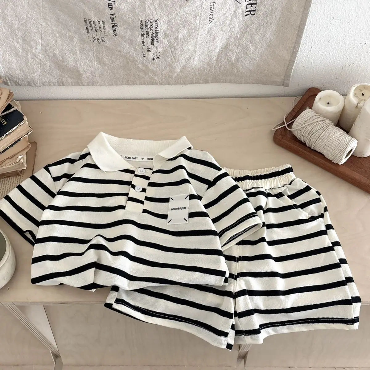 Korean Mother Kids Clothes Boys Girls Polo Shirt Shorts 2pcs Set Summer Cotton Short Sleeve Fashion Suit 1-6Y Children Clothing