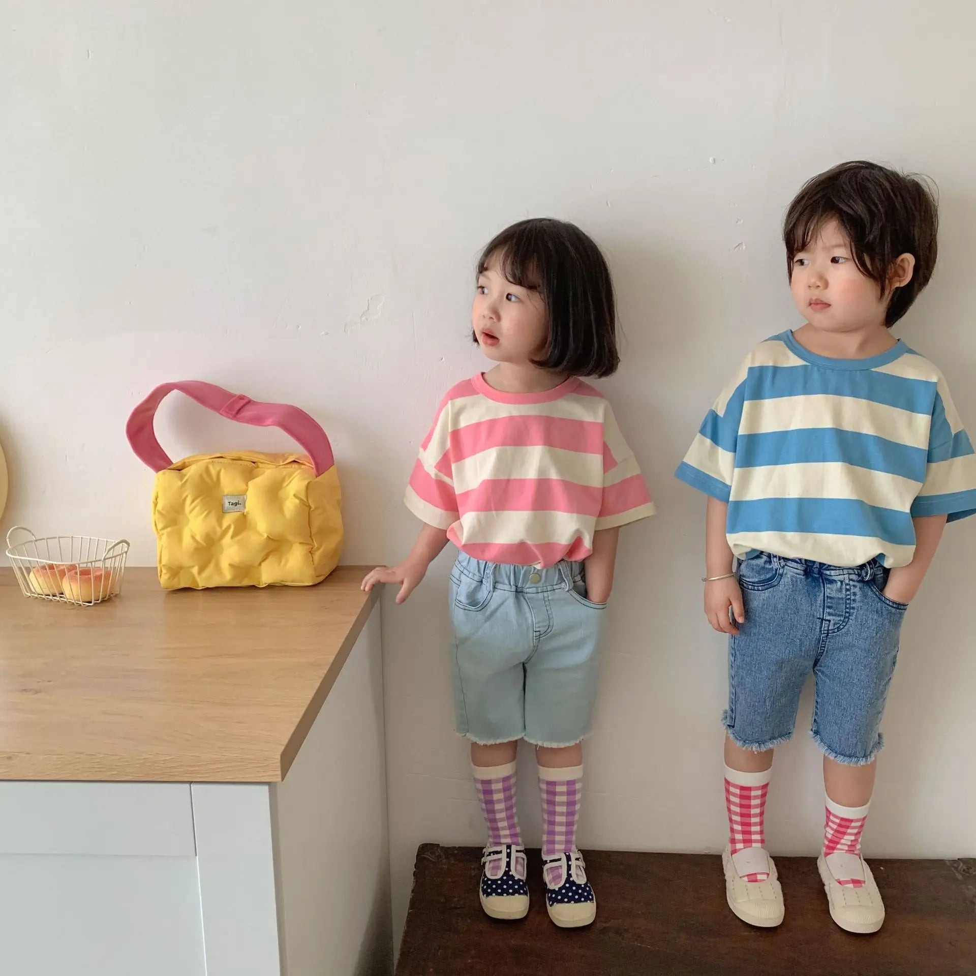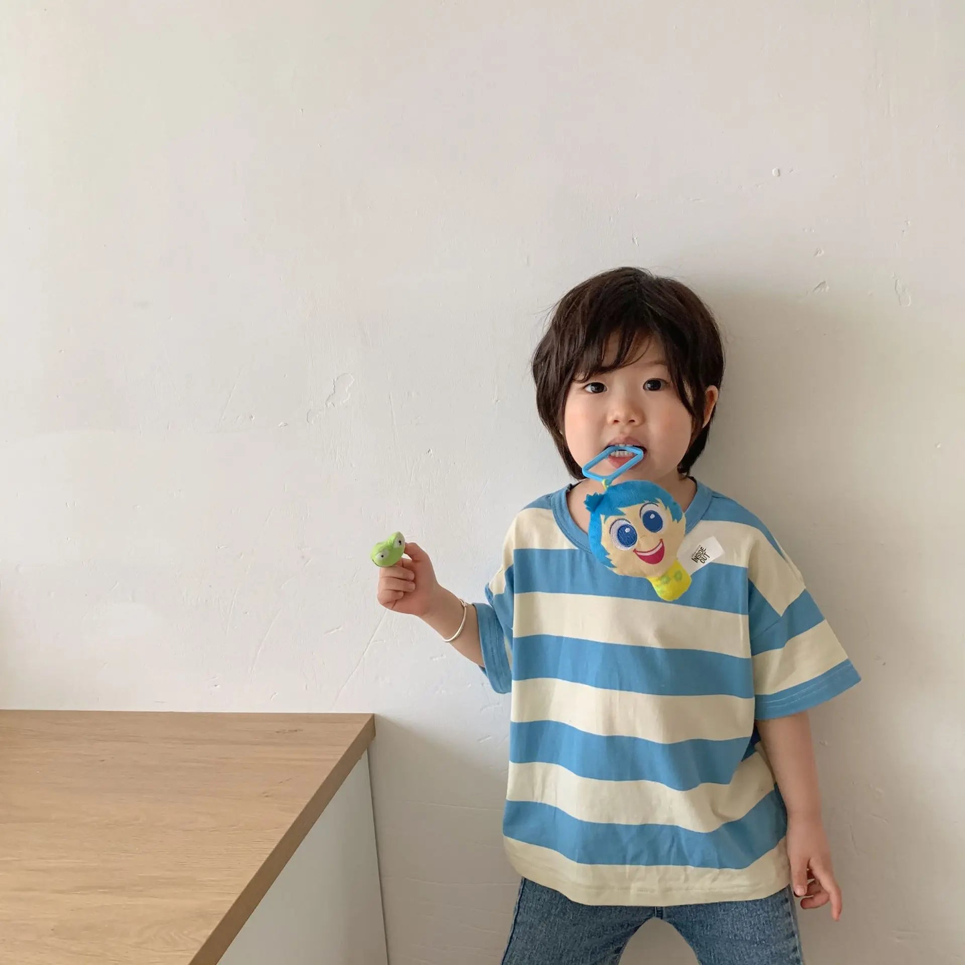 South Korea Summer Children's New Striped T-shirt for Boys and Girls Baby Cute Korean t Sailor Short-sleeved Top