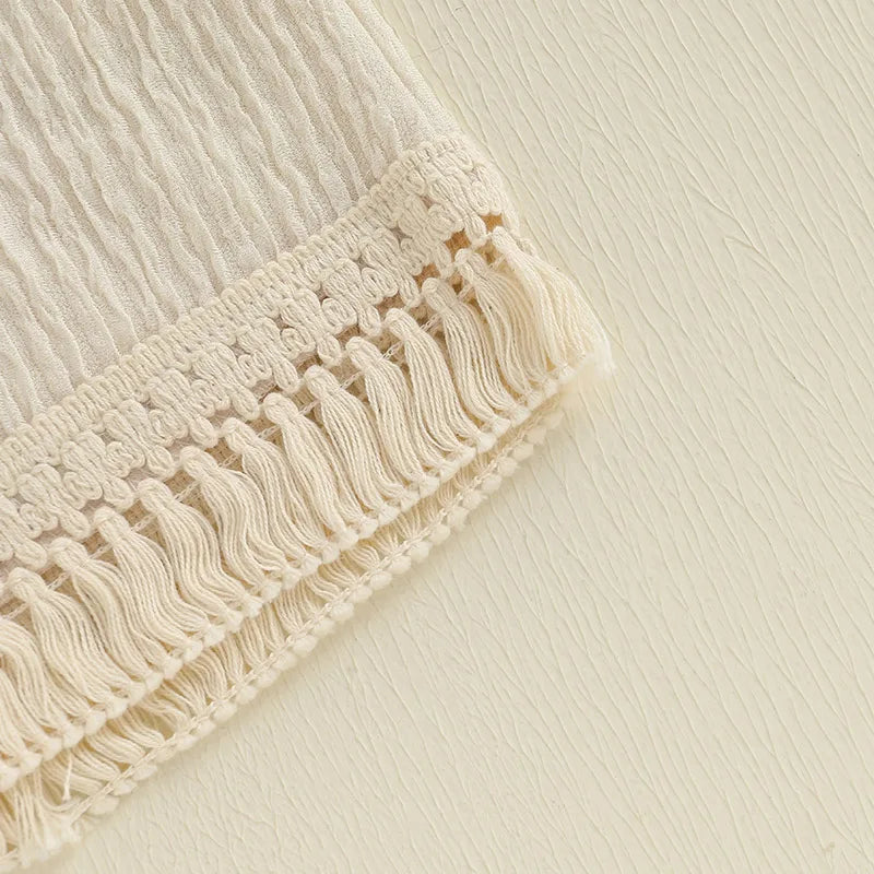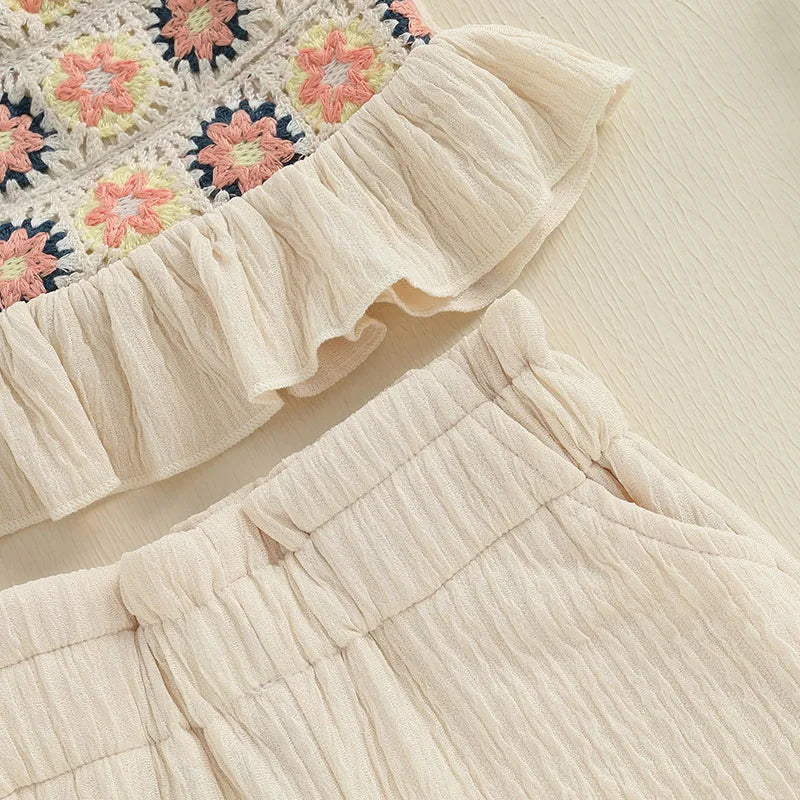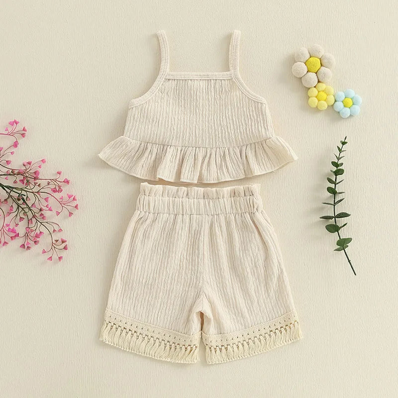 Toddler Baby Girl Summer Outfit Floral Design Ruffled Trim Sleeveless Tank Tops and Tassel Shorts 2 Pcs SetSize(cm)