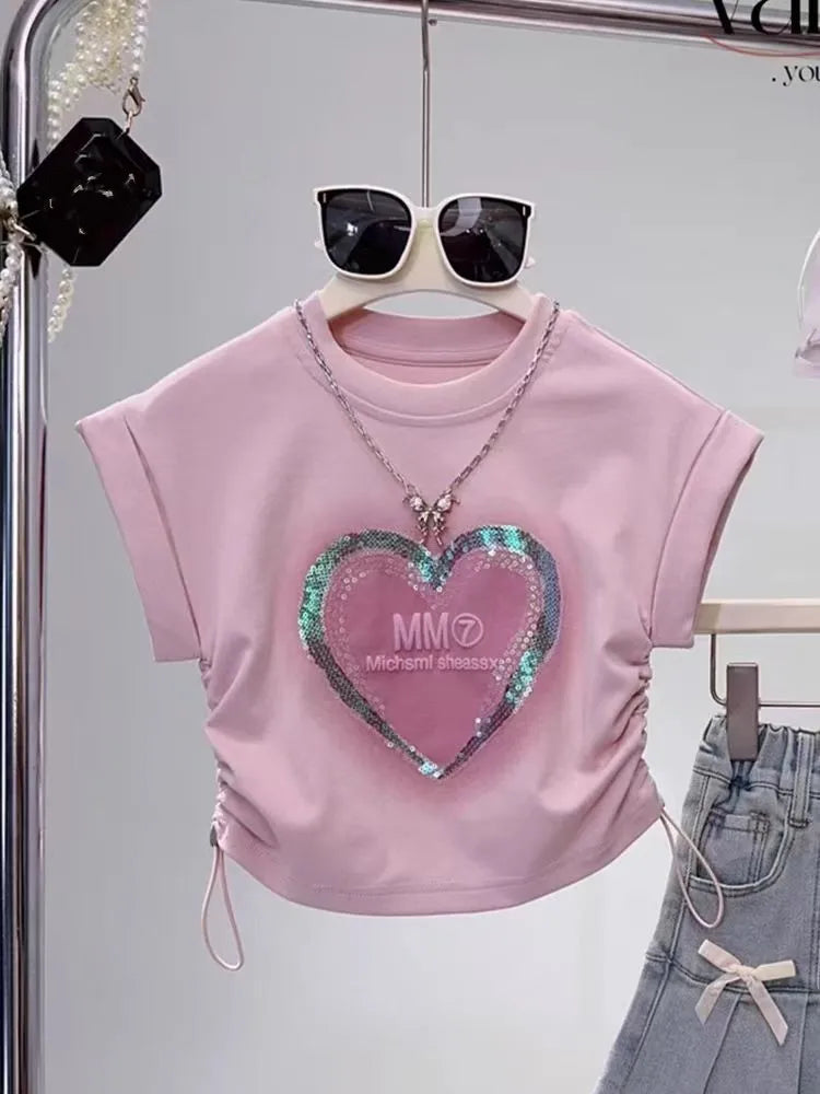 Summer girls' pleated skirt set new fashionable children's princess skirt+short sleeved T-shirt two-piece set kids Outfits